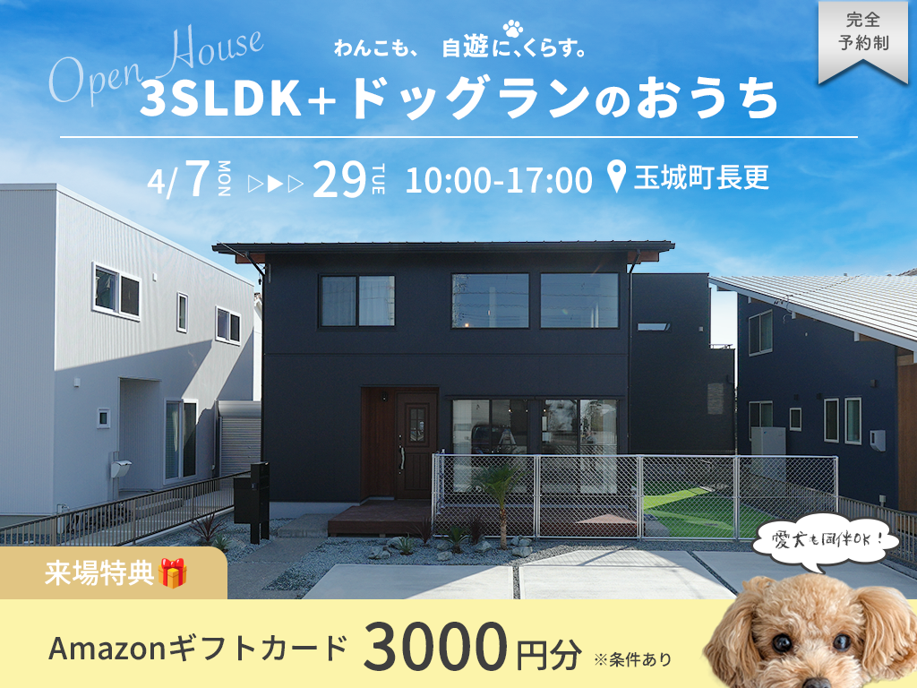 土間リビングのある2階建「BOOOTS」のモデルハウスが、「愛犬と暮らす家」としてリニューアルOPENしました。