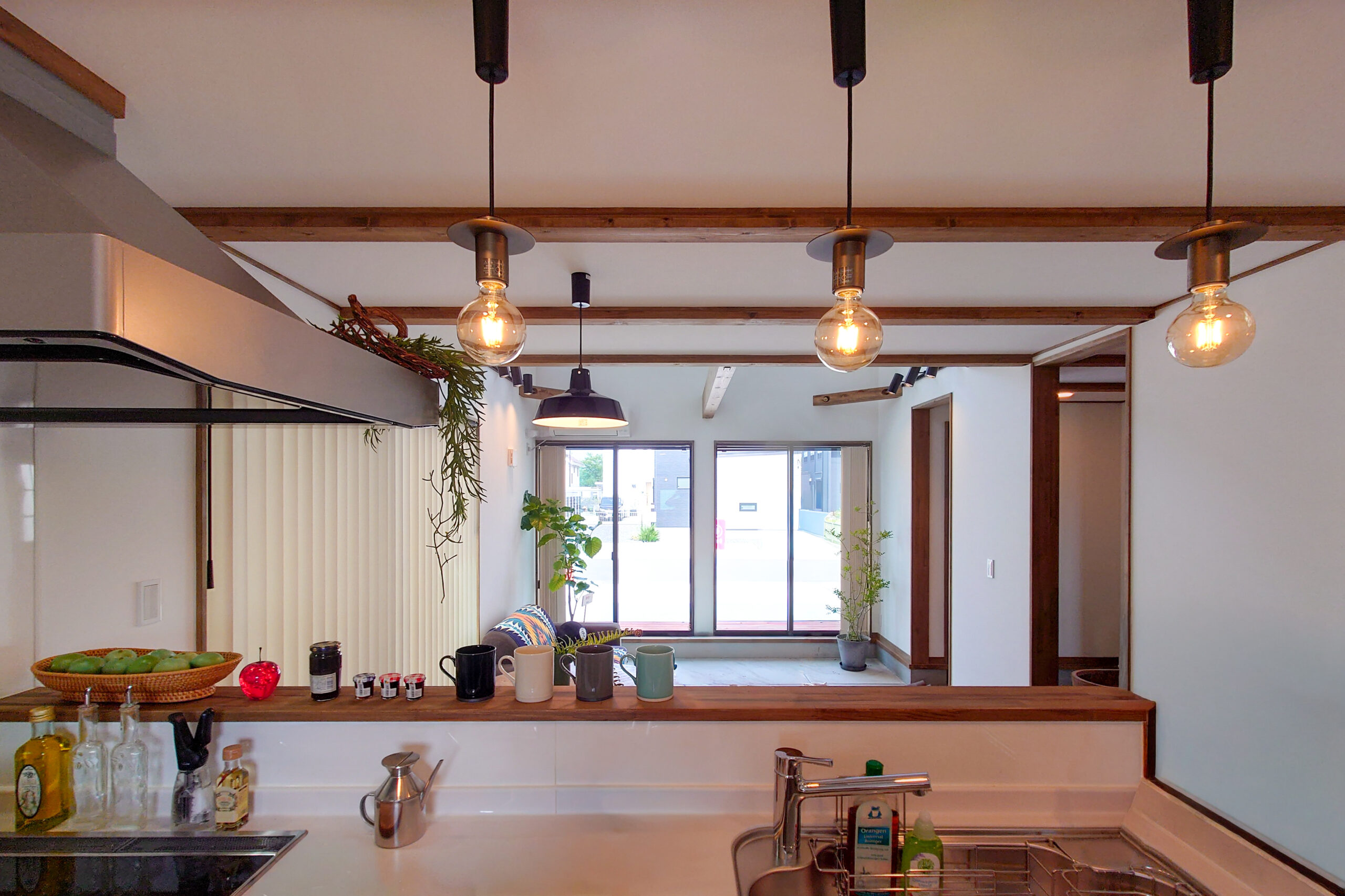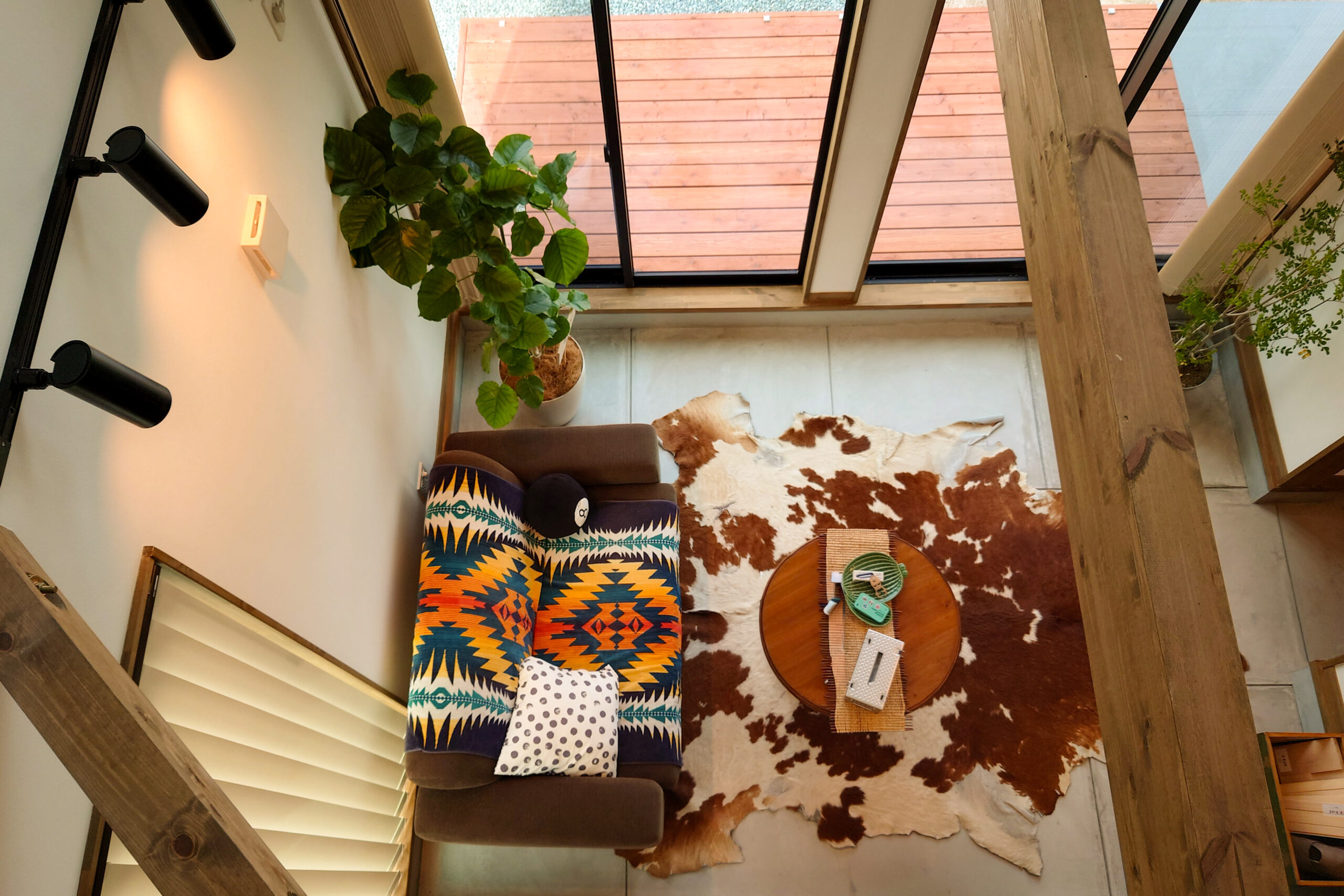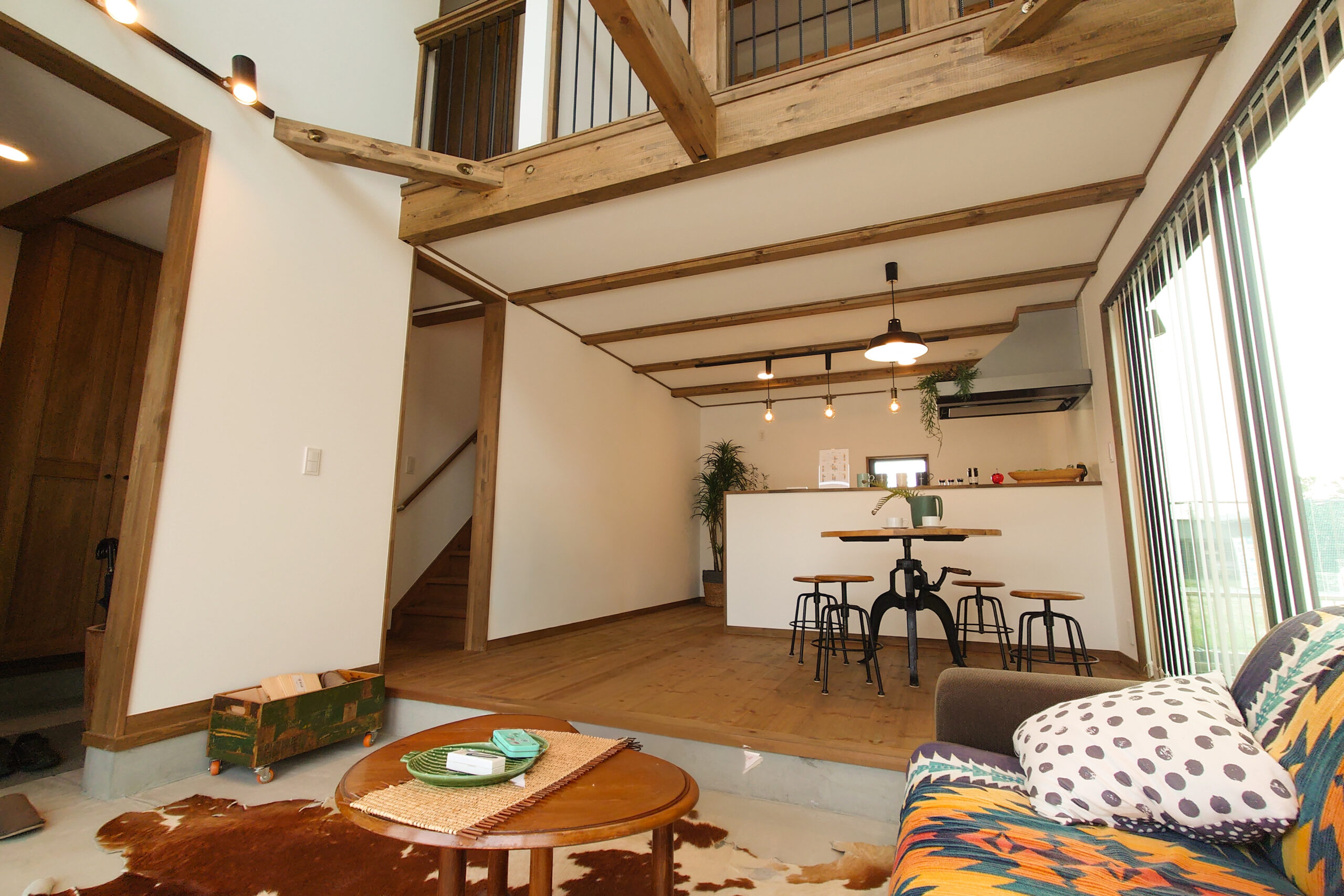 一覧 < new back > 窓を楽しむ家 プラン:BOOOTS 内観色はオリーブで、落ち着いた雰囲気にコーディネート。 趣味のアウトドアライフが室内でも楽しめるように、土間リビングを採用しました。 一覧 < new back >