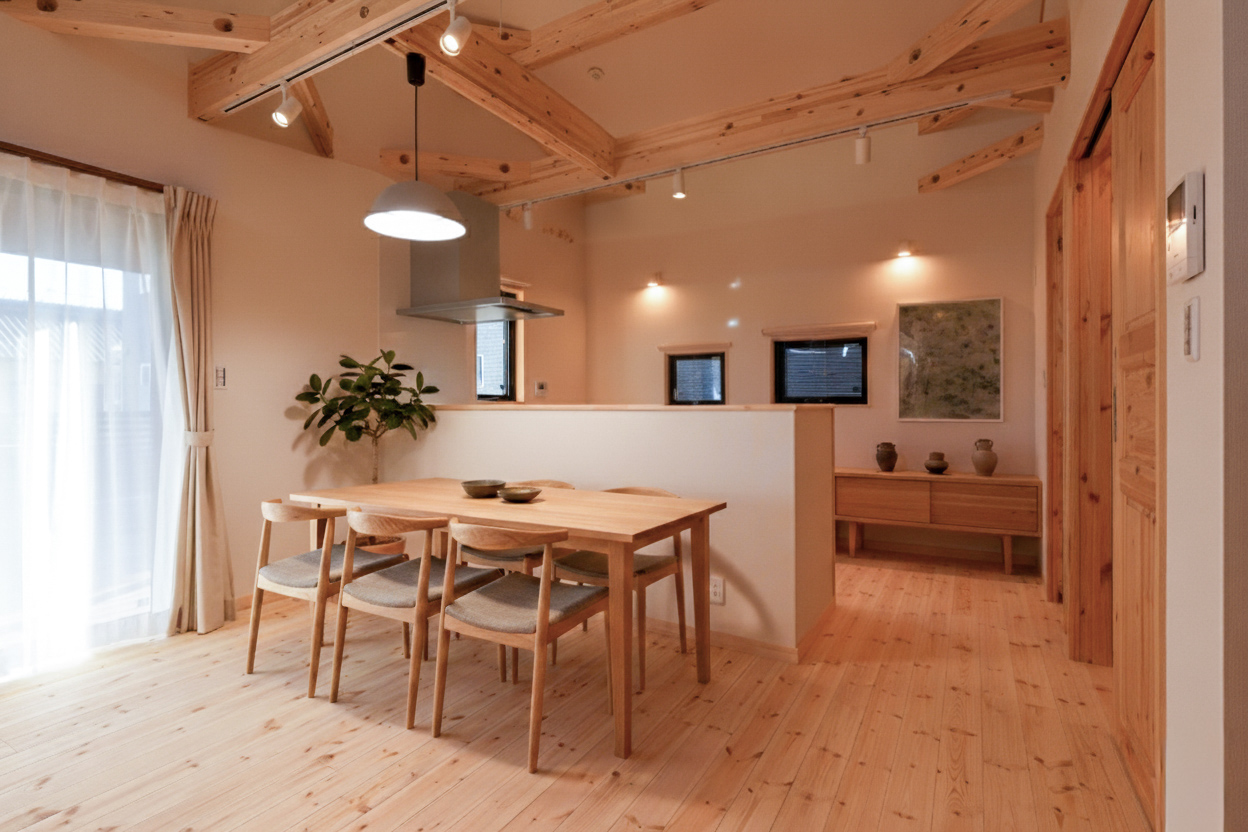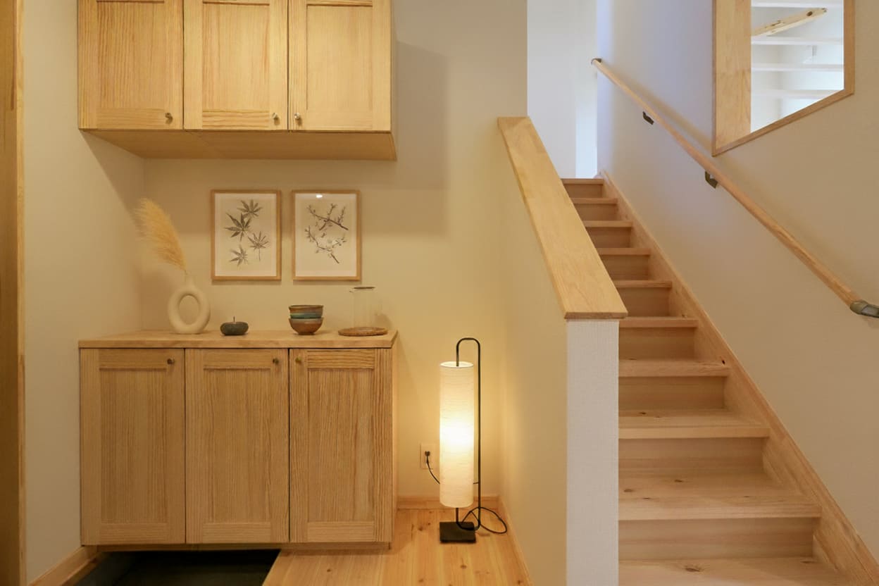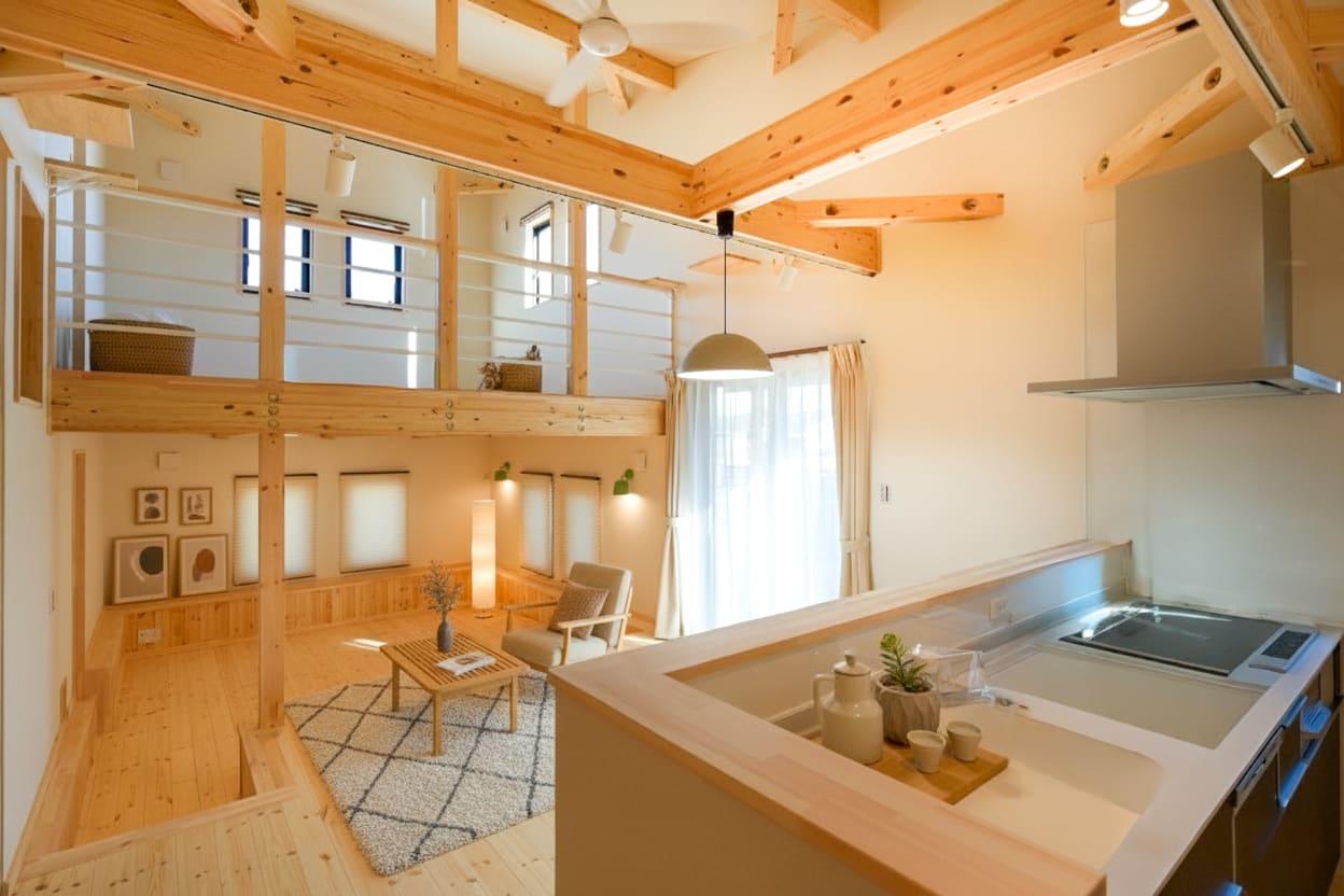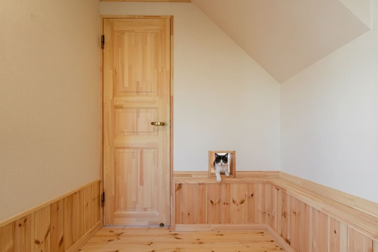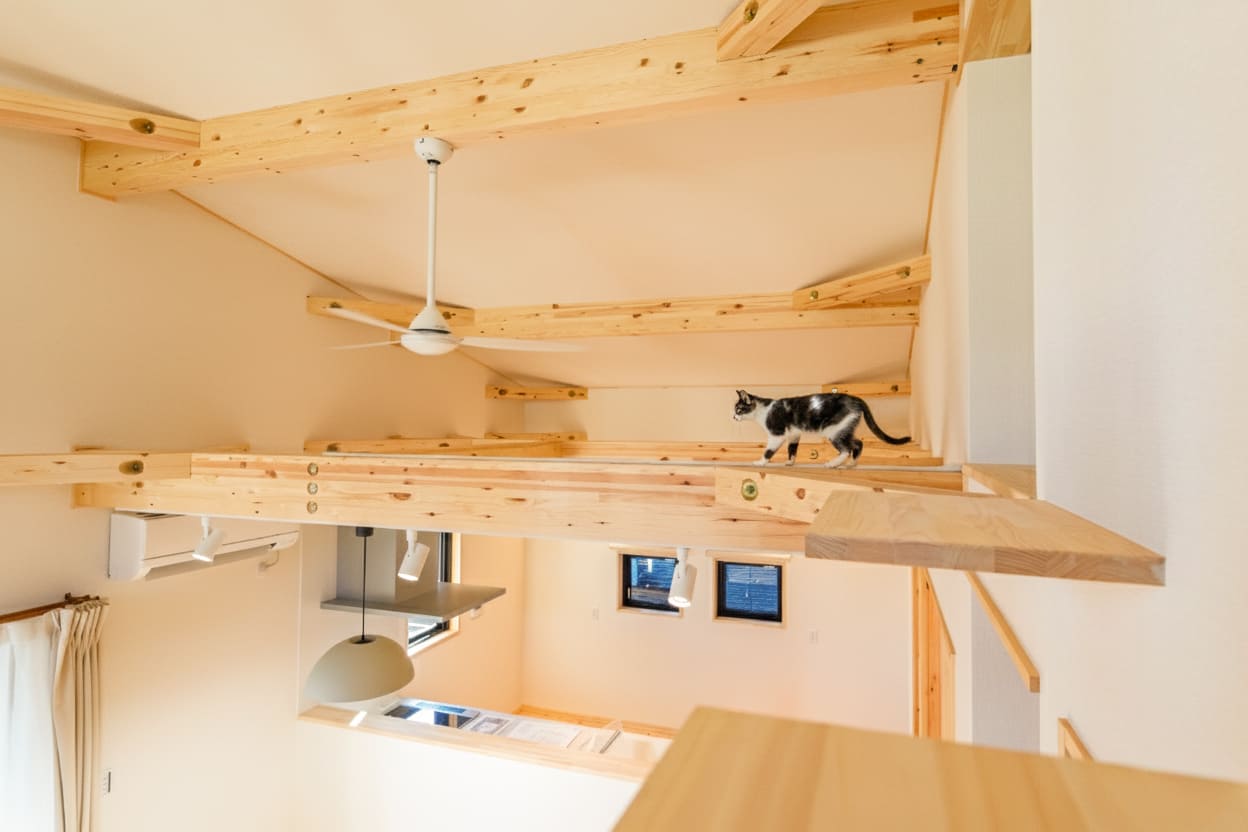 一覧 < new back > 平屋×スキップフロアの家 プラン:CAMP 平屋のようにゆったりとした開放感あふれる住まい。 愛猫と暮らすお施主様のご希望からステップを設け、梁を活かしたキャットウォークを計画しました。 人も猫も心地よく過ごせる、そんな住まいが完成しました。 一覧 < new back >