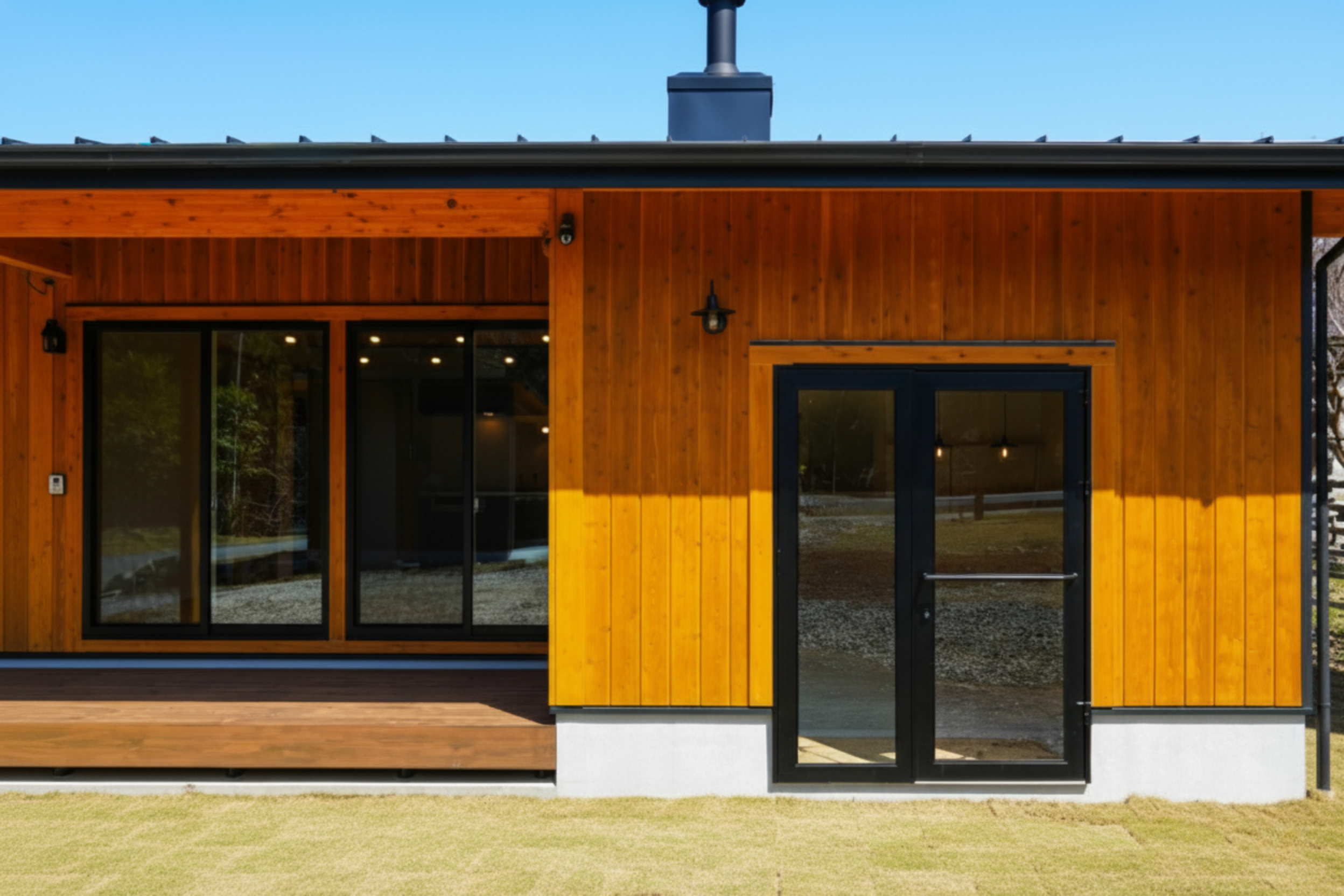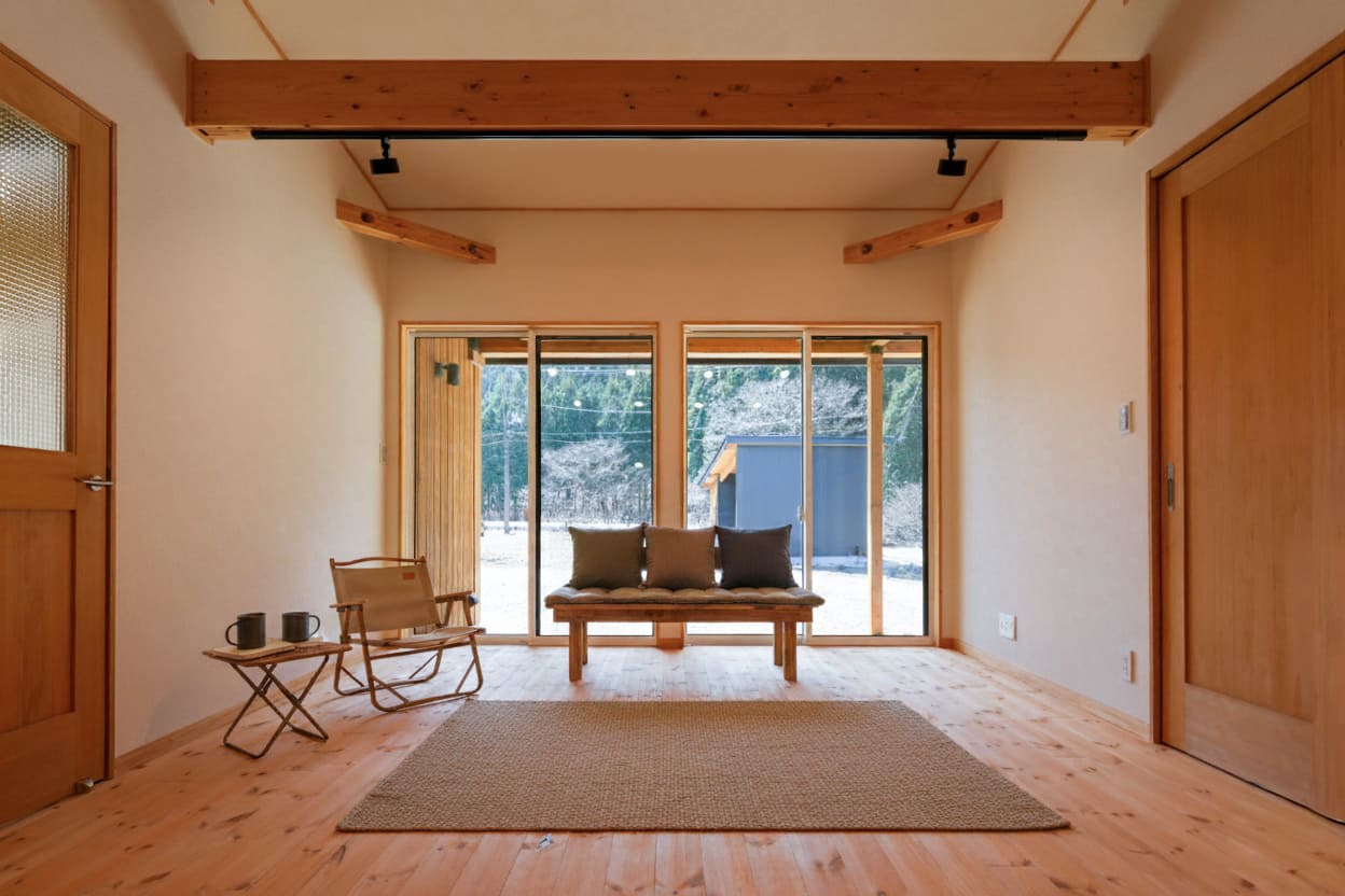 川のせせらぎと満天の星に包まれて、ゆったりとした時間を過ごせる小さなキャンプ場の受付棟。